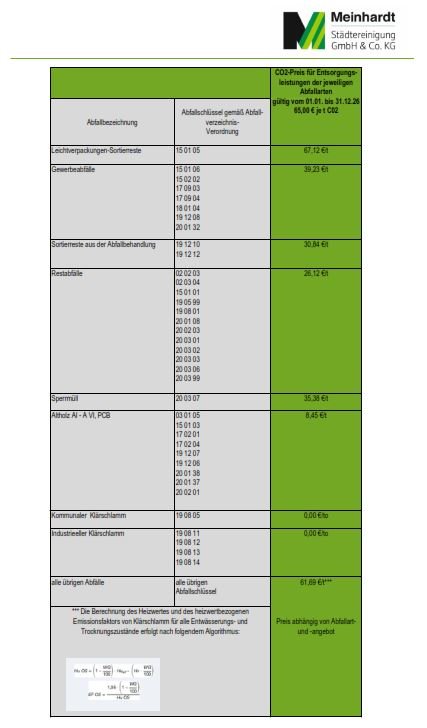 Hier finden Sie die Standardwerte zur Berechnung von Brennstoffemissionen für einzelne Abfälle sowie den jeweiligen CO2-Preis.